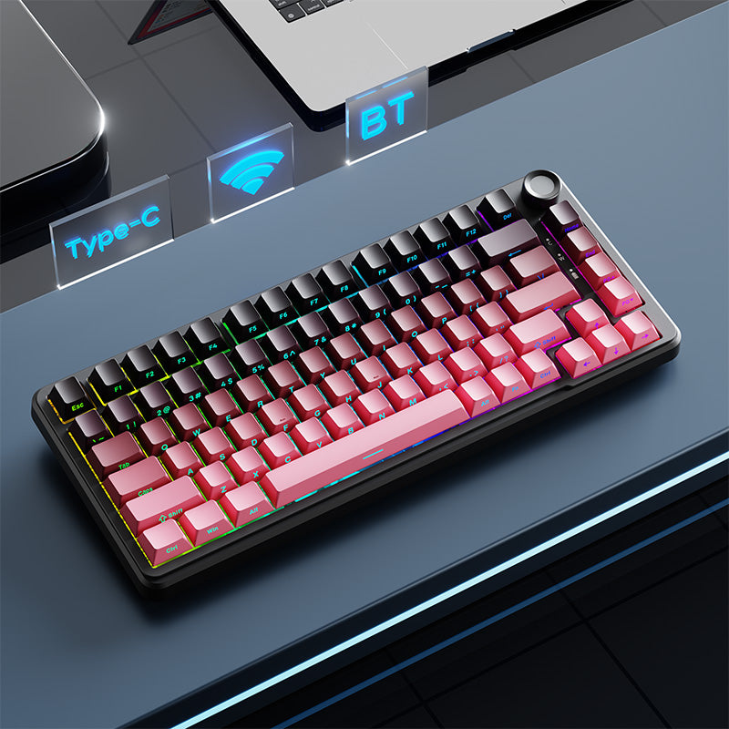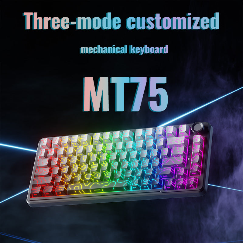 The MT75 Tri-Mode Mechanical Keyboard combines sleek design with high performance. Featuring red switches, rainbow backlighting, and versatile connectivity, this compact 75% layout keyboard delivers responsive typing and seamless multi-device control for work or gaming.