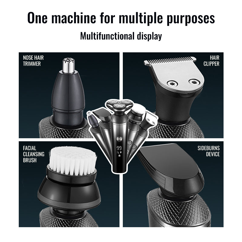 6-in-1 multifunctional: shaver, trimmer, nose hair remover, facial brush, and more
