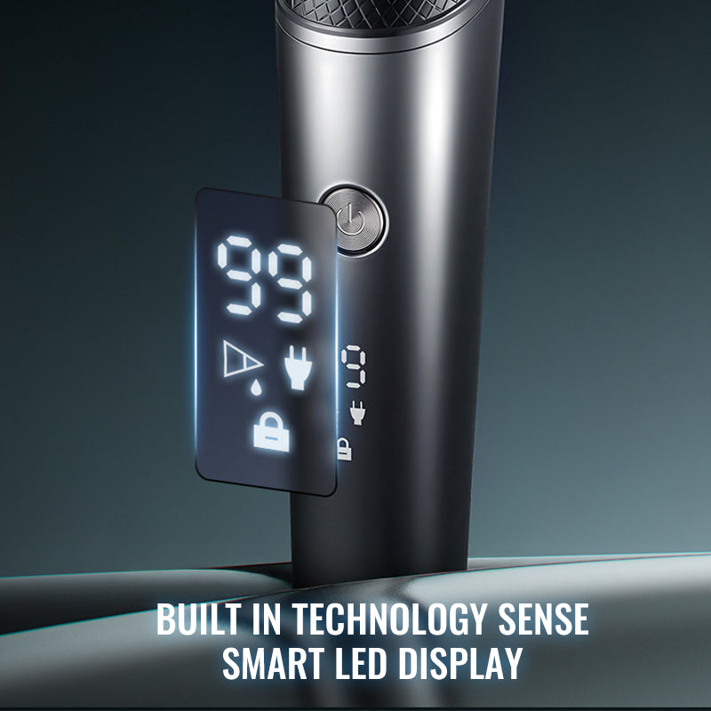 Meet the ultimate all-in-one grooming kit – the Multi-Groom 6-in-1 Electric Shaver. With a smart LED display, full-body waterproof design, and 6 precision attachments, this sleek device handles everything from beard trimming to nose hair, sideburns, and facial cleansing.