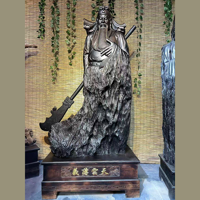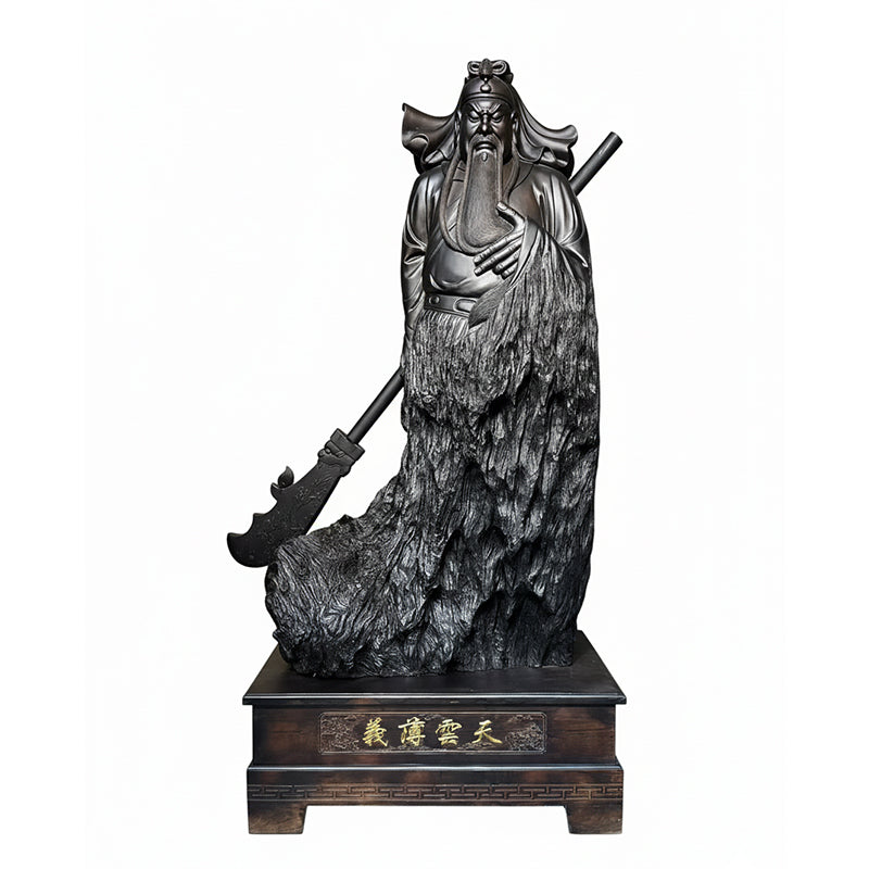 Command attention with this majestic Red Cedar Ebony Guan Yu sculpture, a masterpiece of traditional wood carving. Depicting the revered Chinese deity of loyalty and protection, this imposing statue brings cultural heritage, artistic excellence, and symbolic power to any space.