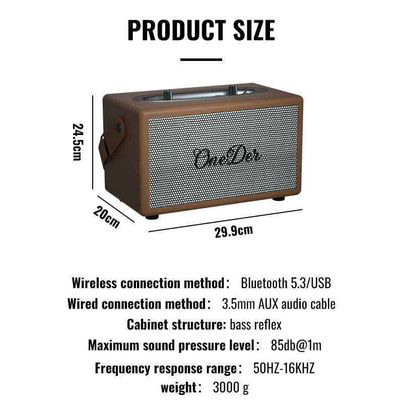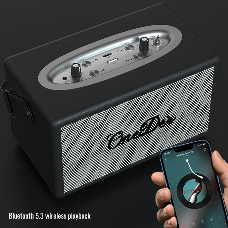 Bring retro charm and modern sound to your space with this vintage-style Bluetooth speaker. Featuring Bluetooth 5.3, AUX input, and dual microphone support, it delivers rich, high-fidelity audio with convenient control and versatile connectivity.