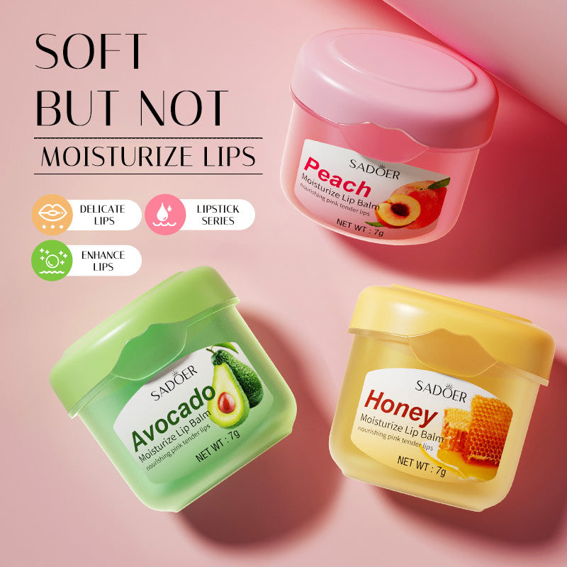Revive and protect your lips with SADÖER Moisturizing Lip Balms. Enriched with natural ingredients like honey, peach, and avocado, these balms provide intensive hydration while helping to restore your lips' natural softness and pink tone.