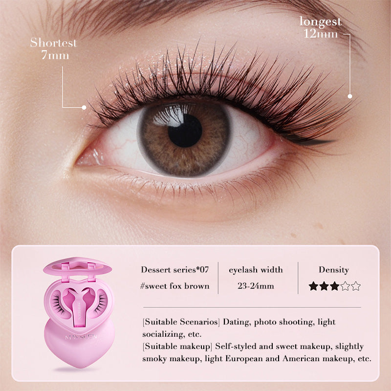 Includes: Magnetic lashes, heart-shaped box, applicator clip