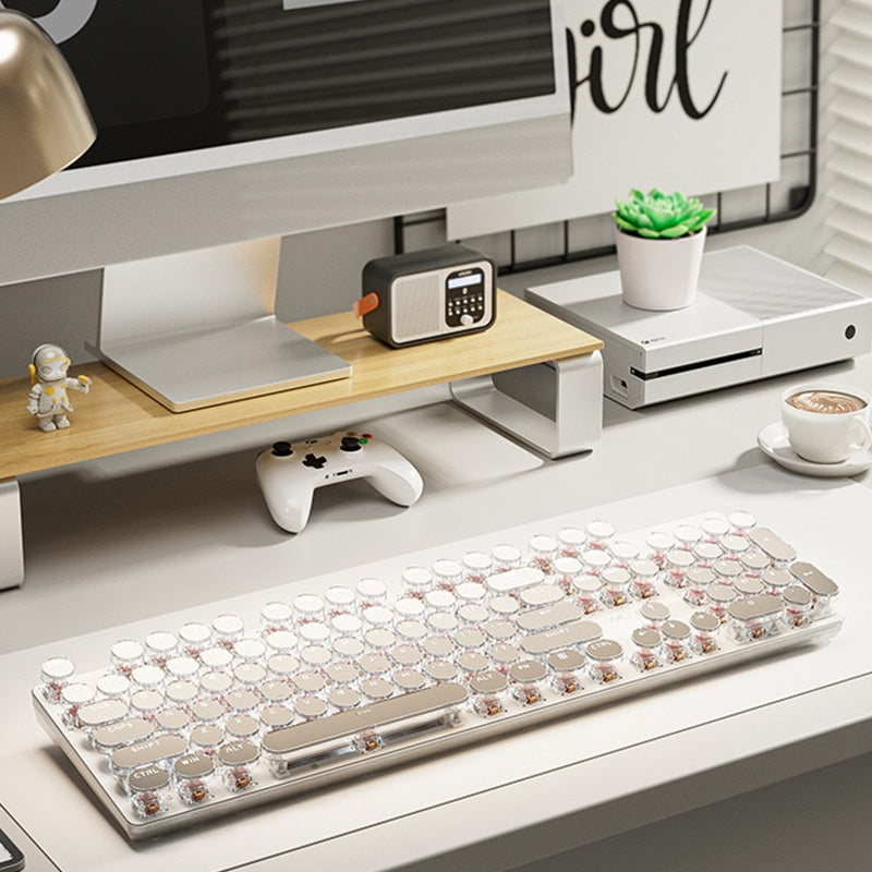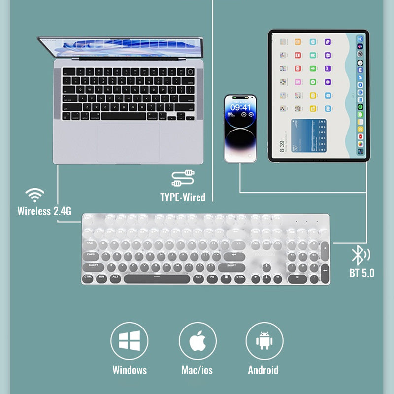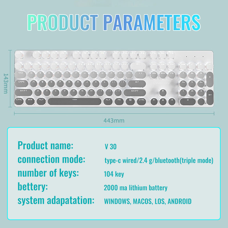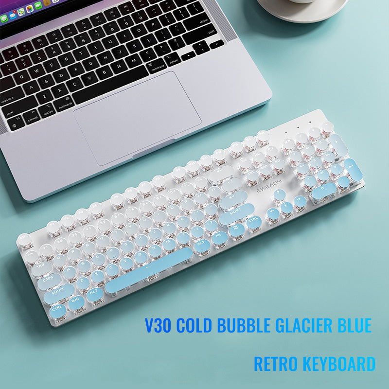 Experience the perfect blend of retro style and modern performance with the V30 Retro Mechanical Keyboard. Featuring a unique cold bubble glacier blue gradient design, white linear switches, and triple-mode connectivity, this keyboard delivers both aesthetic appeal and responsive typing for all your computing needs.