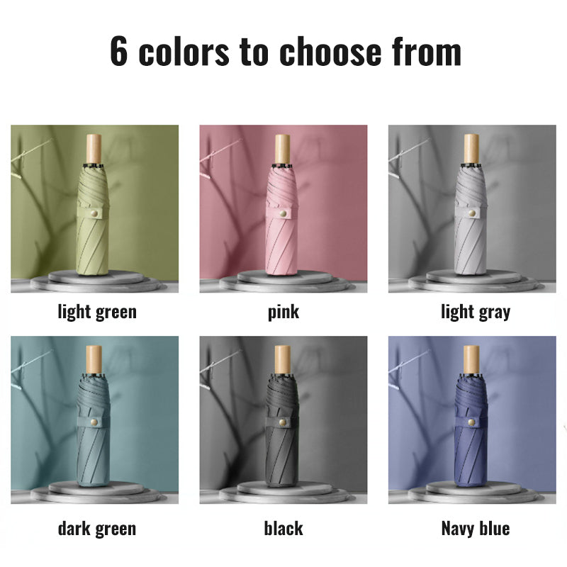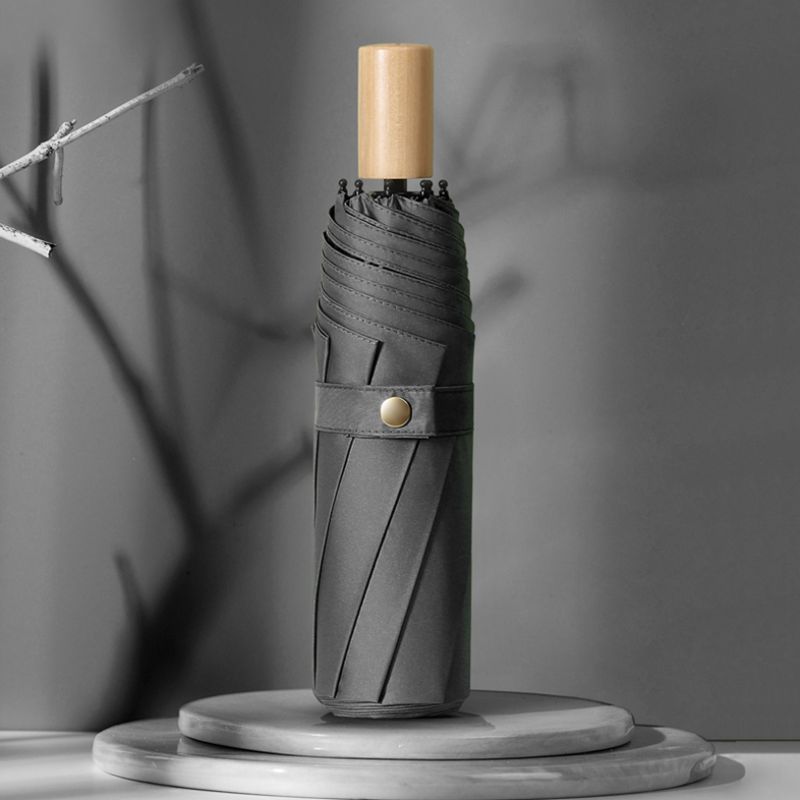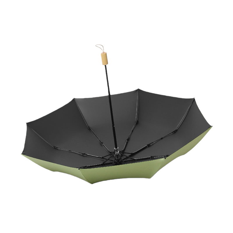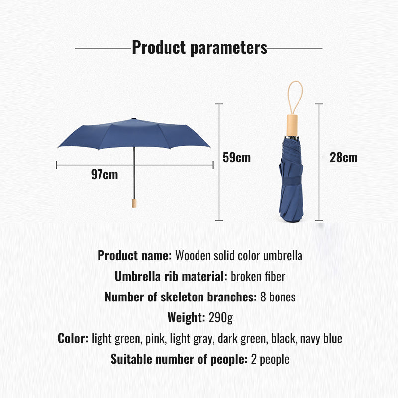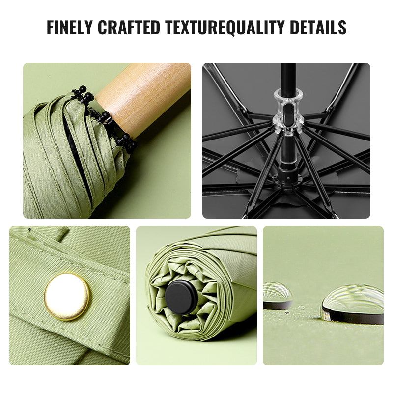 Experience timeless elegance with our wooden handle folding umbrella. Featuring UPF50+ black coating for superior sun protection and water-repellent fabric for rainy days, this compact umbrella combines vintage aesthetics with modern functionality. Perfect for two people sharing, it's your ideal companion for sunny days and sudden showers.