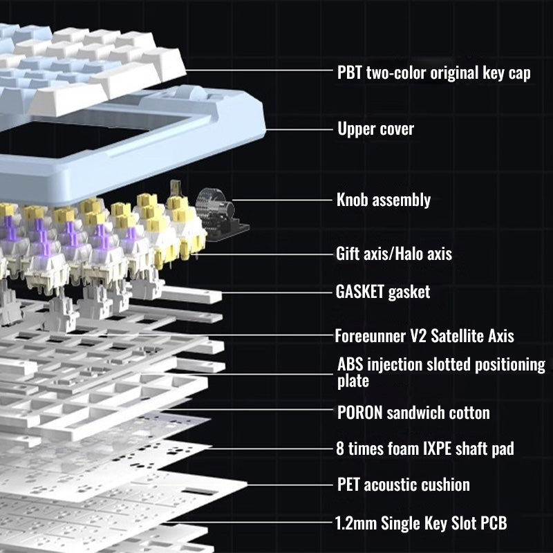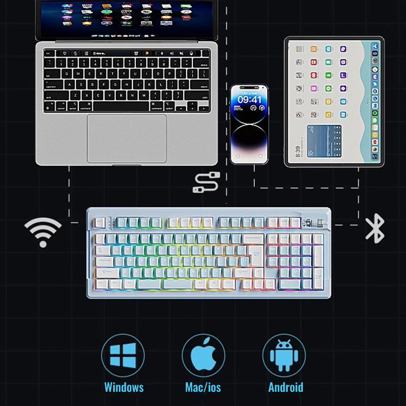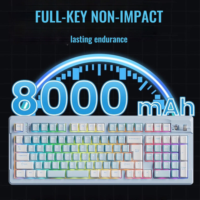Meet the X99 Gasket Tri-Mode Keyboard – engineered for premium typing comfort and performance. Featuring a GASKET structure, hot-swappable switches, and an 8000mAh battery, this ergonomic keyboard offers seamless connectivity and customizable sound for extended use.