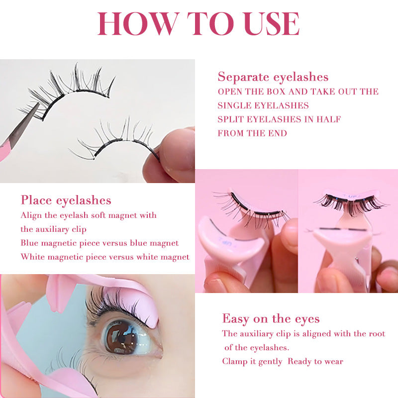 Includes: Magnetic lashes, heart-shaped storage box, applicator clip
